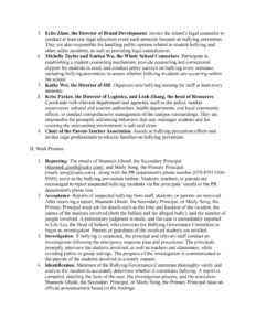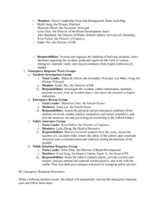 2. Emergency Response Plan for Student Bullying Incidents: Roles and responsibilities of the committee managing prevention and response efforts.