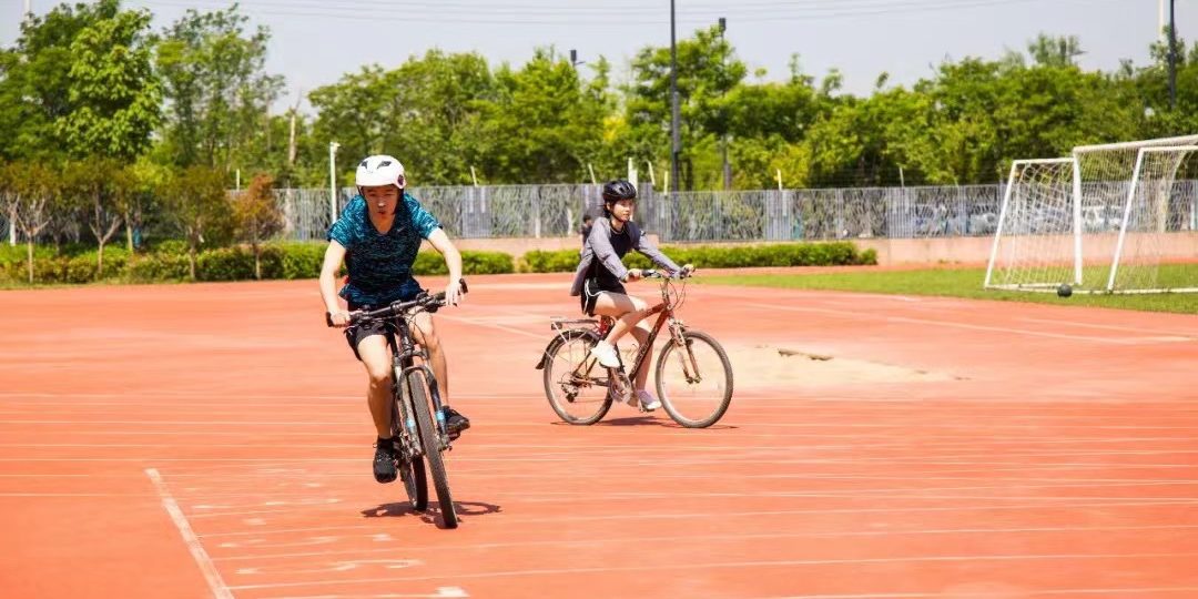 When the athletes finished the swim, it was on to the bike section of the race. Half of the athletes cycled indoors using our ‘spin bikes’ in our mini studio with the other half cycling outdoors. The course was a 1.1km loop of our campus, a fitting backdrop of such an event. As students finished their cycle, they transitioned to the run. The athletes showed incredible resilience under the ever-warming Xi’an sun but despite the heat, everyone successfully completed their race.